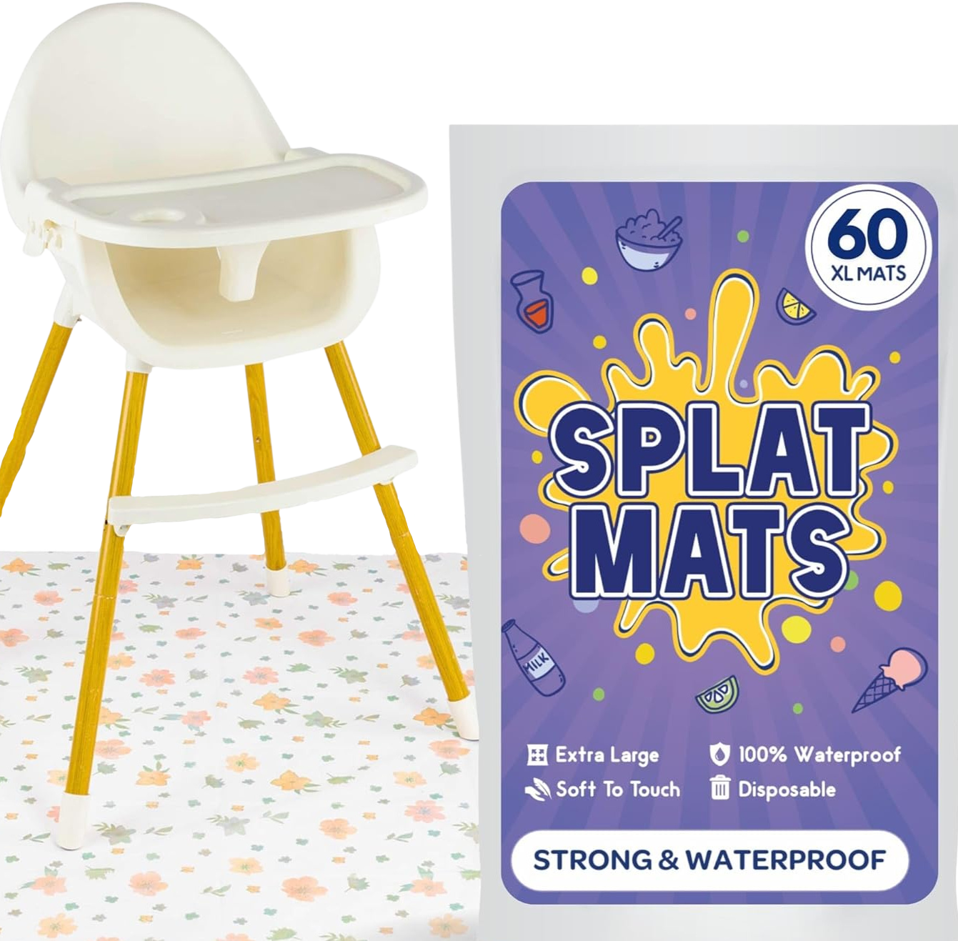 Turn mealtime mess into effortless cleanup with our Disposable Splat Mats - Floral (120 Pack)! These beautifully designed mats feature a delicate floral pattern while protecting surfaces from spills, crumbs, and sticky food. Perfect for high chairs, restaurant outings, or craft time, each ultra-absorbent mat lays flat for full coverage and discards easily. The generous 120-count ensures you're always prepared, whether at home or on-the-go. Made from baby-safe, BPA-free materials, these mats combine practicality with pretty style for stress-free parenting.